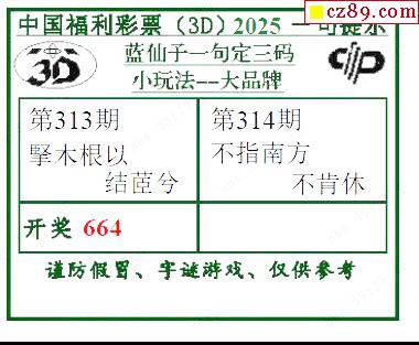 > 2025314期蓝仙子一句定三码