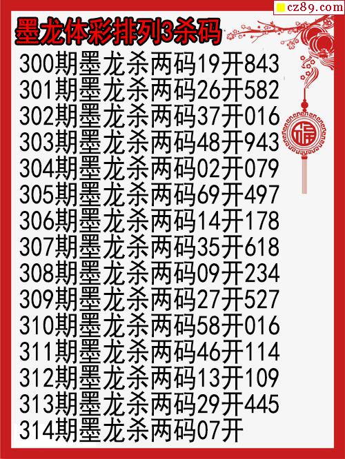 > 25年314期墨龙体彩排列3杀码图